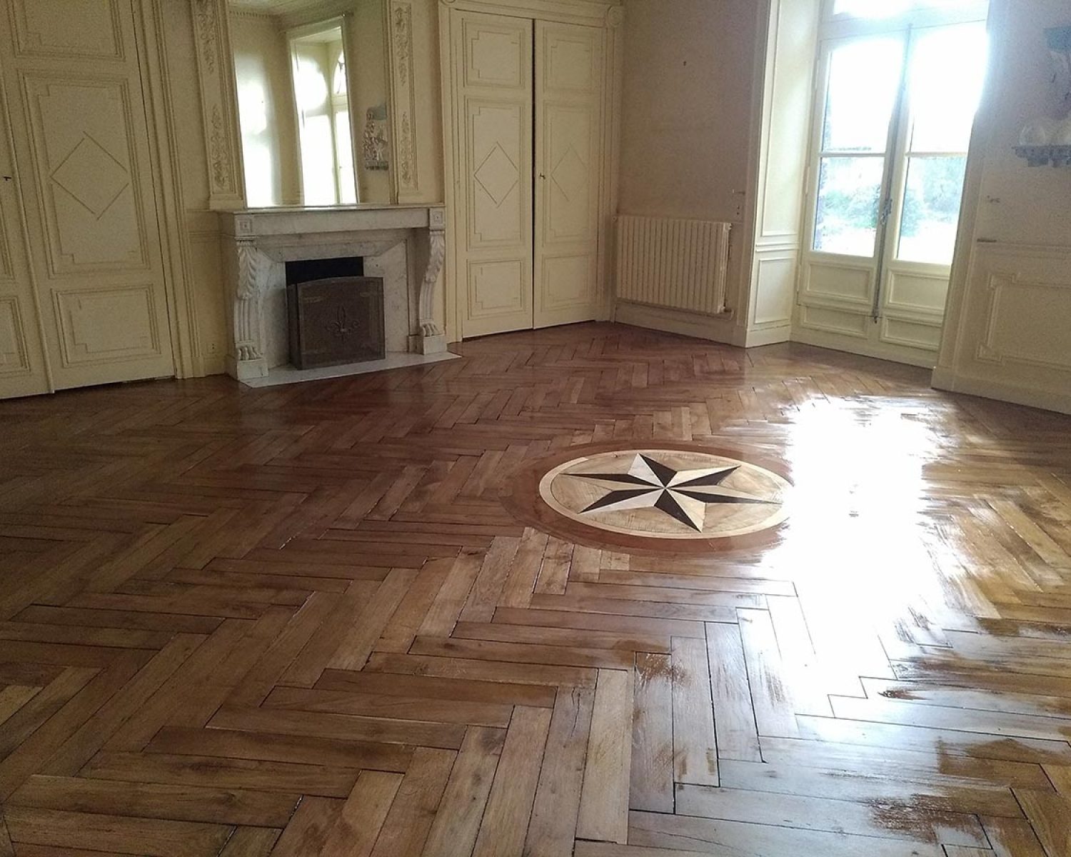 - Fourniture et pose de parquet chêne, ponçage, vitrification