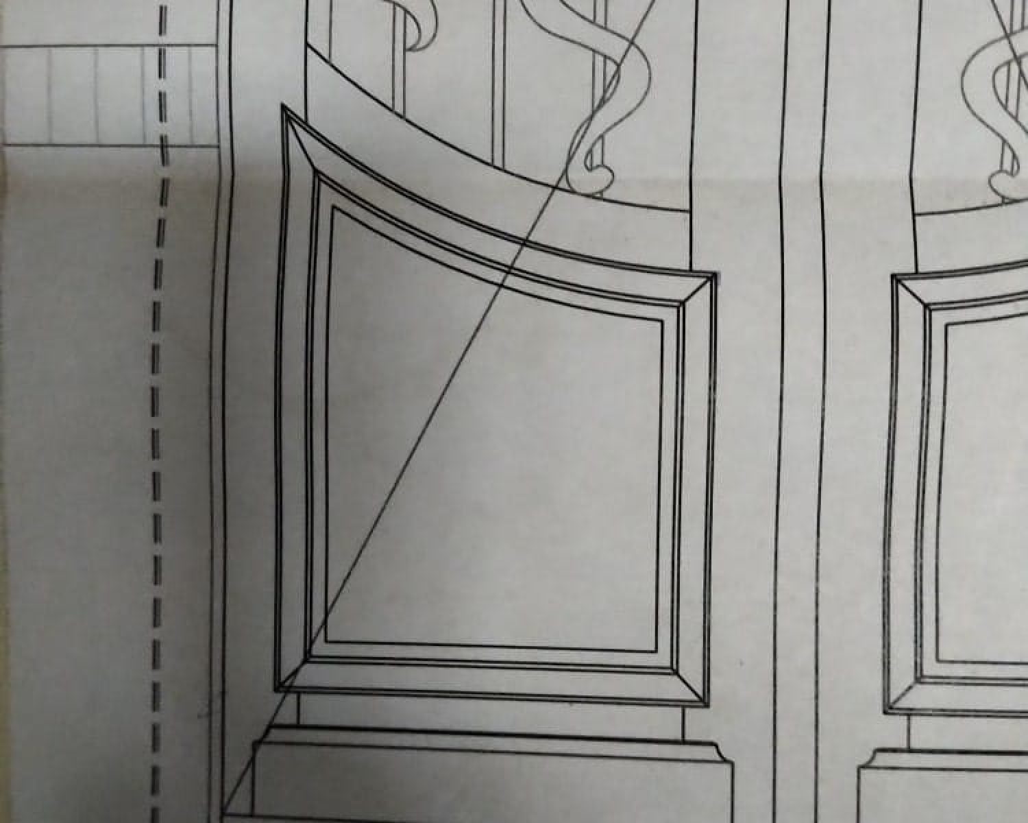 - Fourniture et pose porte d’entrée en chêne massif modèle dito existant, dormant avec seuil carré de 20*20, imposte vitrée en ogive, ouvrant affleurant avec renfort, panneau à table saillante.