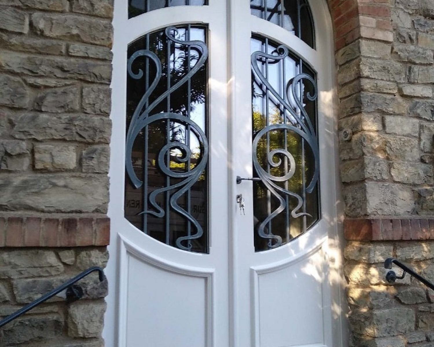 - Équipée de 2 grilles, réalisés par un métallier forgeron avec traitement par métallisation